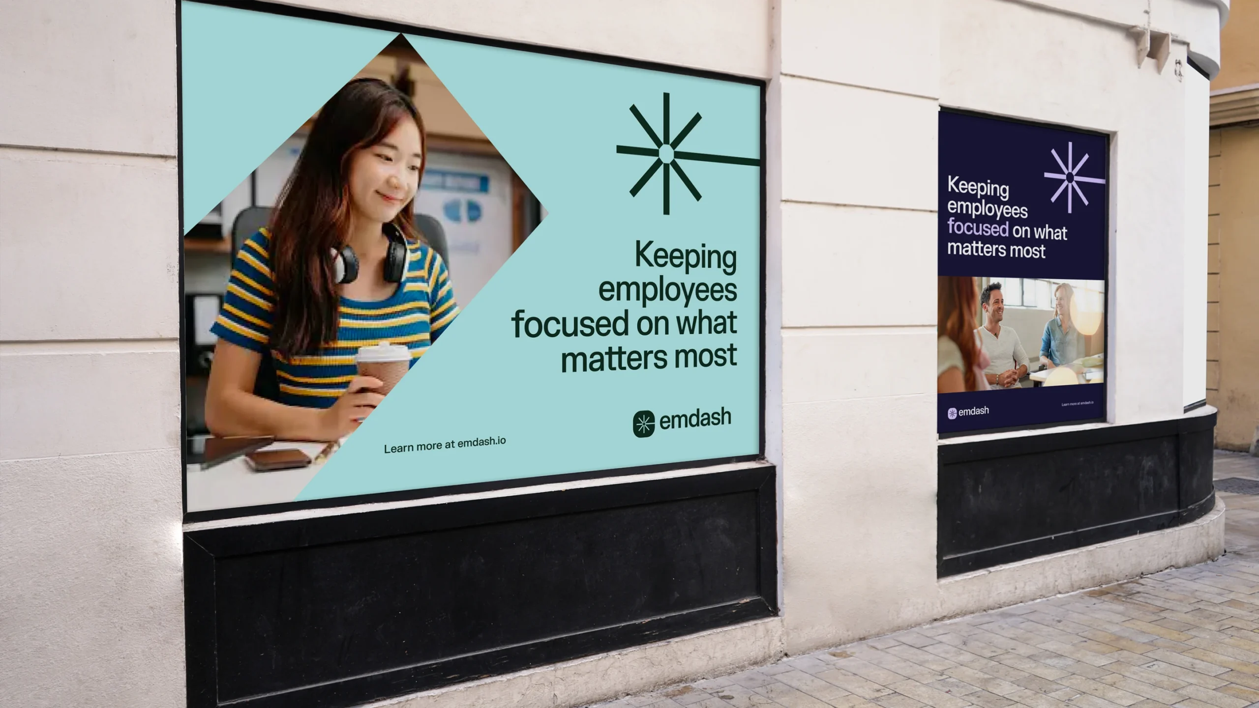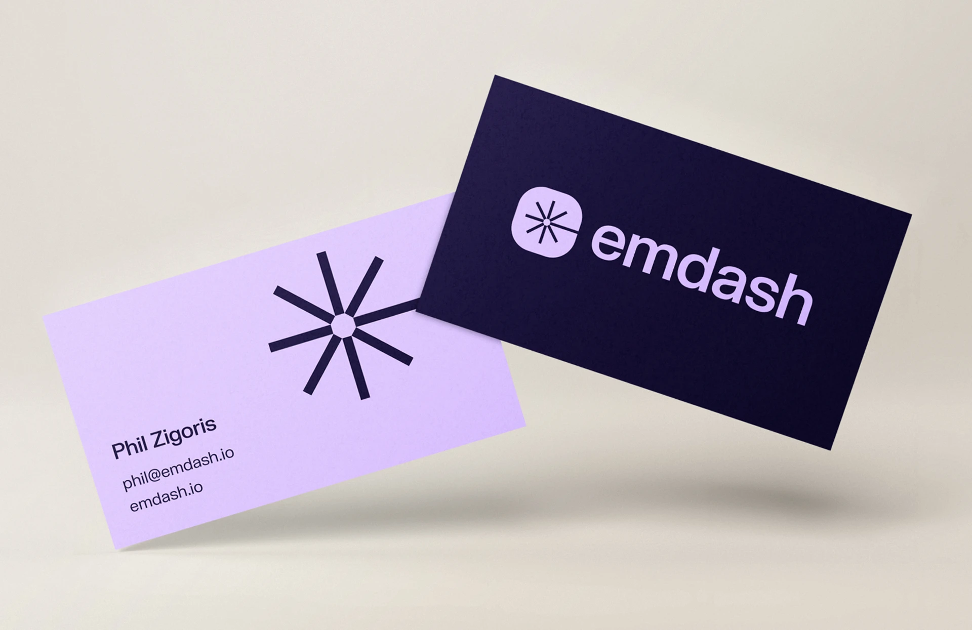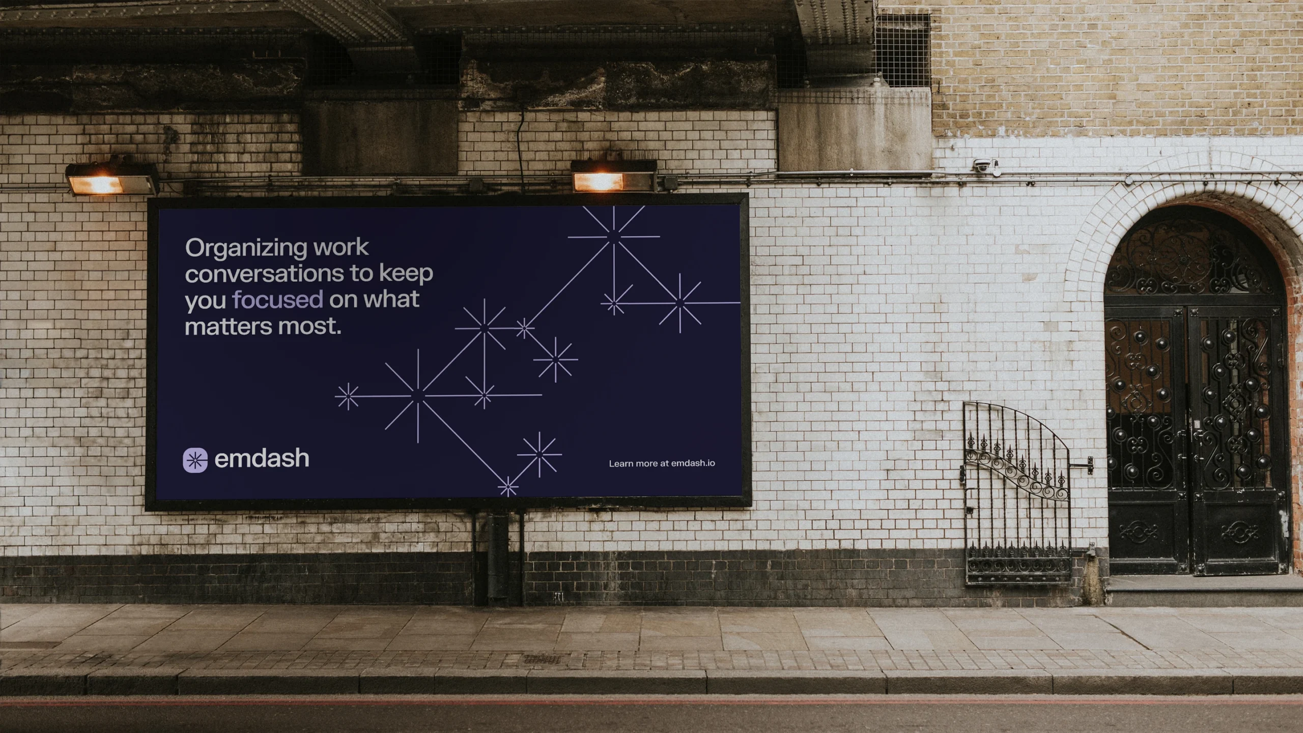 In a world of endless work chatter, emdash helps teams focus on what matters. We created a visual identity that reflects that clarity and intent.