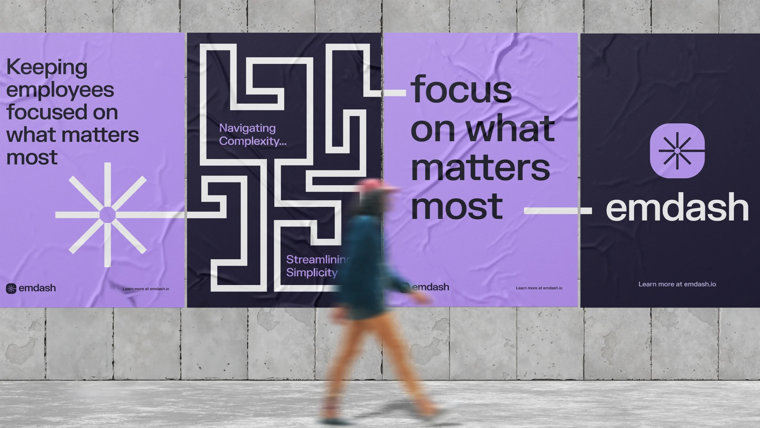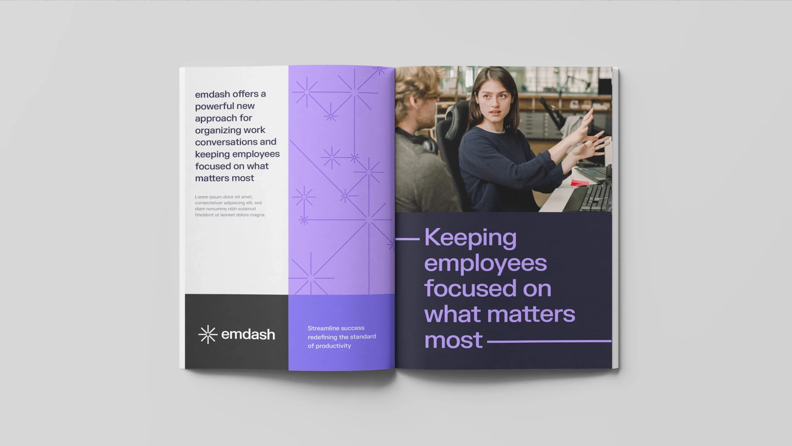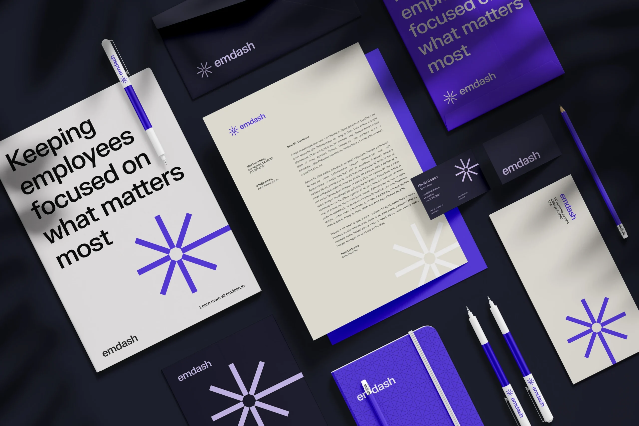 In a world of endless work chatter, emdash helps teams focus on what matters. We created a visual identity that reflects that clarity and intent.